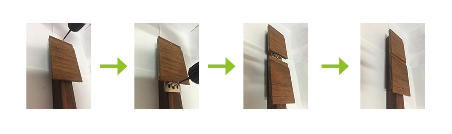 2. Asenna seinäpaneeli ylhäältä alas, aseta seinäpaneeli vaakasuoraan ja vaakasuora päätysolmu sijaitsee pystykölin keskellä. Kiinnitä seinäpaneeli suoraan köliin ruuveilla ja nauloilla.